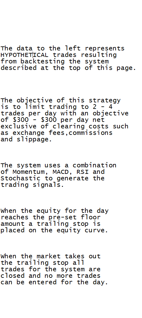 The data below left reflects the results of HYPOTHETICAL trades for the GV NQ 2Minute Limited System Data Range For This Period Is Found At the top Of Each Image Below
